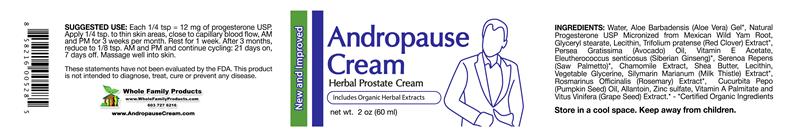 1) Purchase Andropause Cream and other great products at Whole Family Products website, the trusted natural health supplements store online..